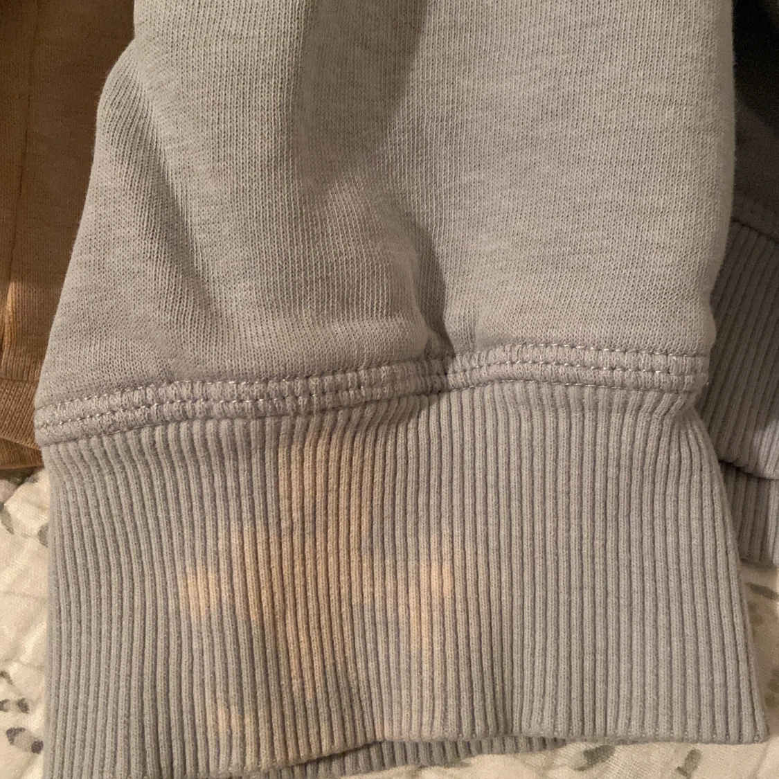 Två sweatshirts till salu. En beige och en grå med texten 'ASPEN SKI' broderad på framsidan. Båda har ribbade muddar vid ärmslut och nederkant. Perfekta för en avslappnad stil.