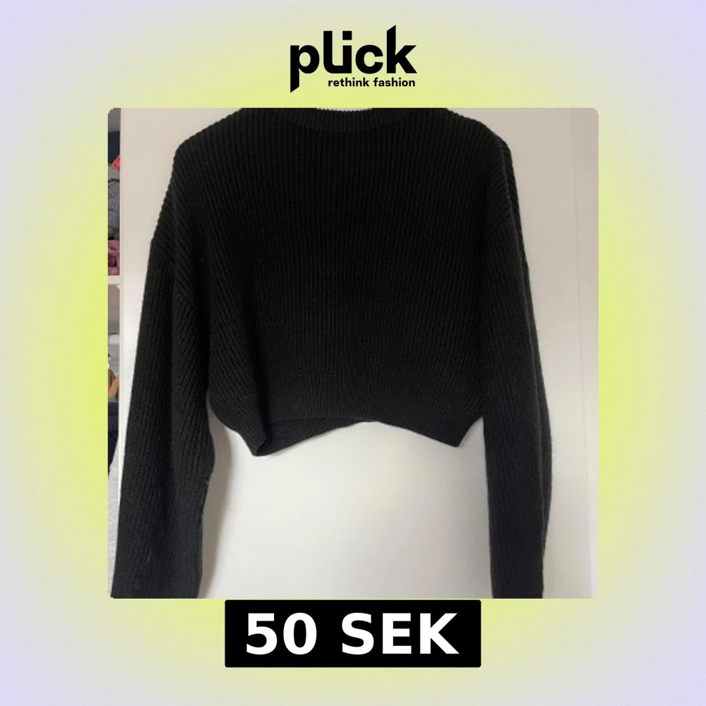 Svart croppad stickad tröja från Divided. Tröjan har en ribbad struktur, lång ärm och rund halsringning. Perfekt för lager-på-lager och passar till både jeans och kjol.