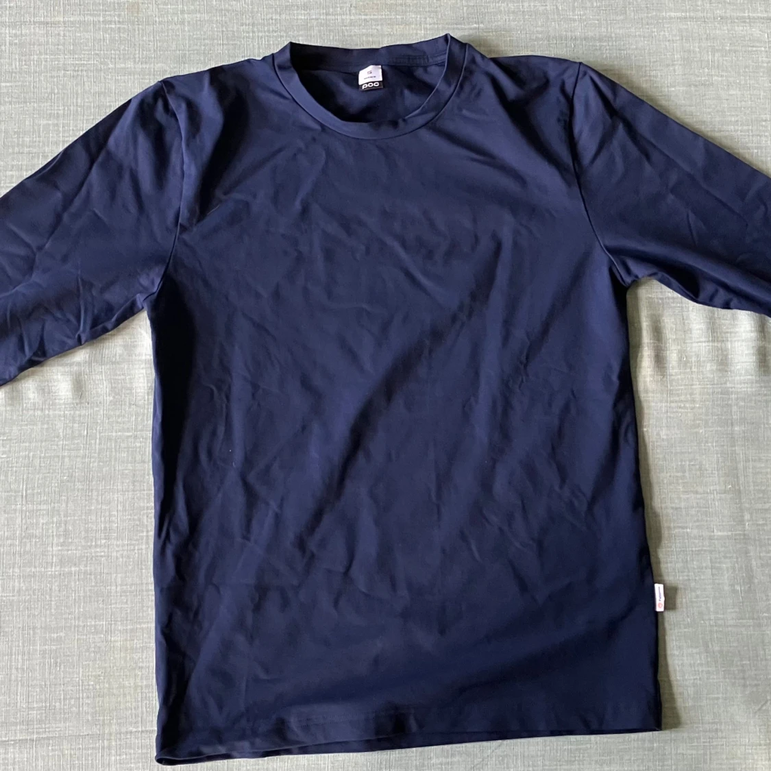 En stilren mörkblå långärmad träningströja från POC i 92% nylon och 8% spandex. Tröjan har en klassisk rund halsringning och enkel design utan mönster eller detaljer.
