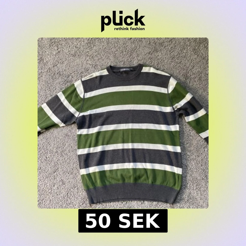 Snygg randig tröja från Race Marine i storlek S. Tröjan har breda horisontella ränder i grönt, grått och vitt, rund halsringning och ribbade muddar. Perfekt för dig som gillar en avslappnad men stilren look.
