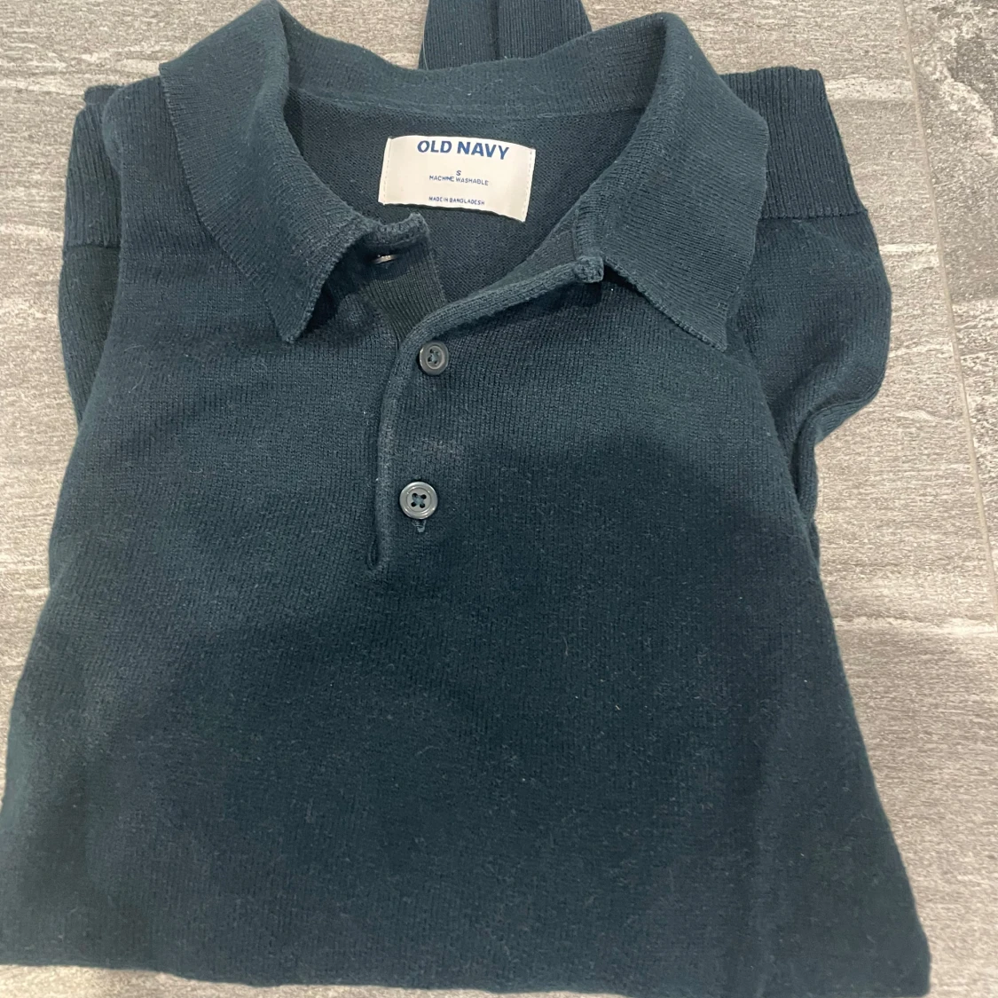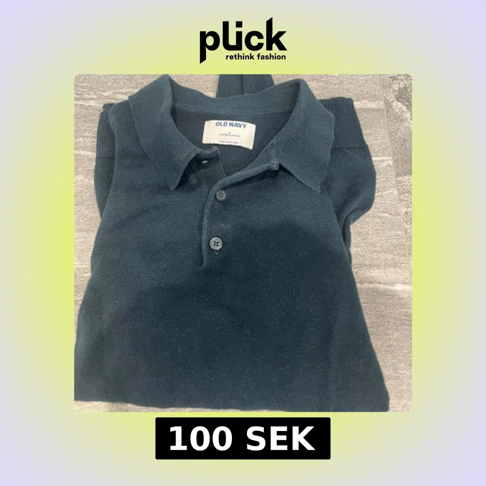 Snygg mörkblå stickad pikétröja från Old Navy med klassisk krage och två knappar framtill. Köpt i New York endast använd ett fåtal gånger! Tveka inte på att höra av dig vid minsta funderingar!
