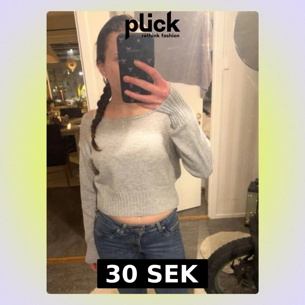 Säljer en ljusgrå stickad tröja med off shoulder-design och långa ärmar. Tröjan är croppad och har ribbstickade muddar vid ärmslut och nederkant. Perfekt för dig som gillar en avslappnad och trendig stil. Materialet känns mjukt och bekvämt mot huden.