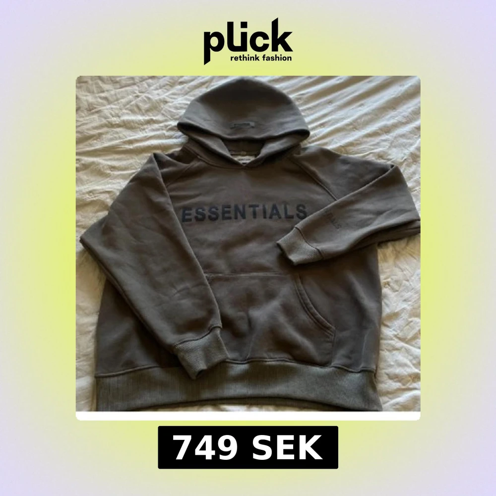 Säljer en brun hoodie från Essentials Fear of God med svart logga på bröstet och ärmen. Tröjan har huva, känguruficka och är tillverkad i mjuk bomullsmix. Perfekt för dig som gillar streetwear och vill ha en clean look.