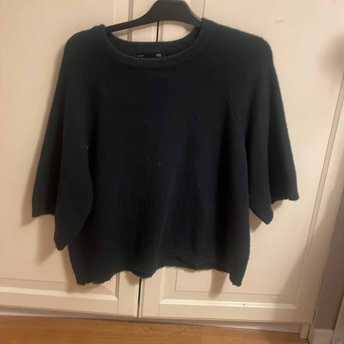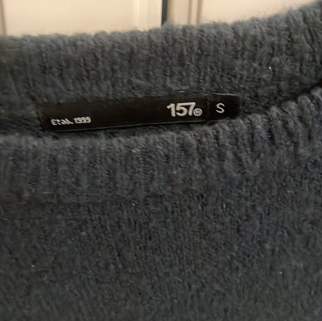 En svart stickad tröja från 157 med rund halsringning och avslappnad passform. Tröjan har trekvartsärmar och är perfekt för lager-på-lager-stil. Enkel och stilren design som funkar till många olika outfits.
