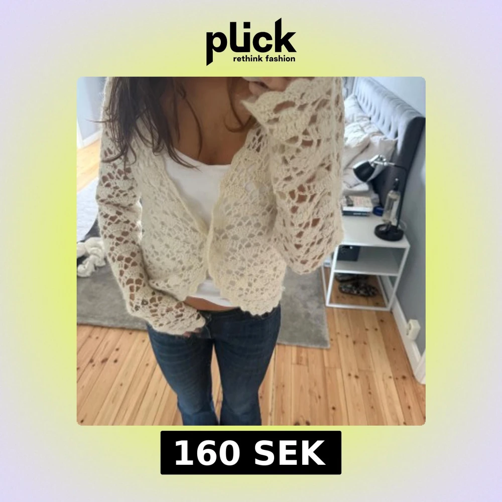 Superfin virkad kofta🥰. Ihopsatt med säkerhetsnål på denna bild men fungerar bra utan också!