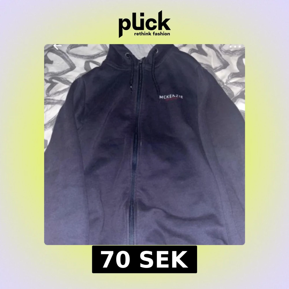 Säljer en svart hoodie från McKenzie med dragkedja framtill och justerbar huva. Tröjan har diskret logga på bröstet och är perfekt för en avslappnad stil.