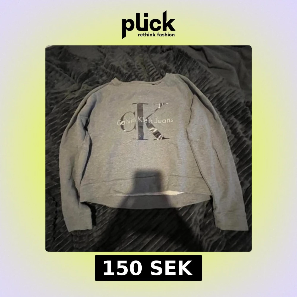 Grå sweatshirt från Calvin Klein - Säljer en stilren grå sweatshirt från Calvin Klein med deras logga tryckt på bröstet. Perfekt för en avslappnad look. Hör av er vid minsta fundering!