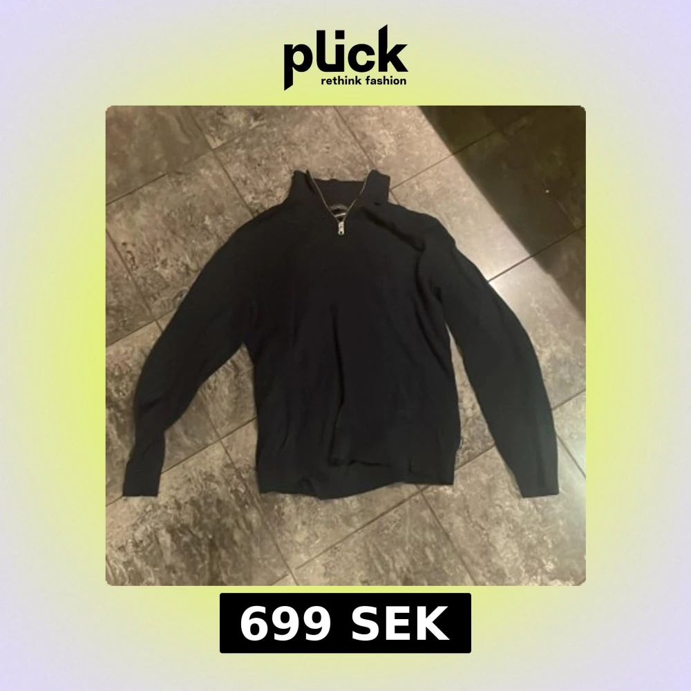 Säljer en stilren svart tröja med dragkedja vid halsen. Tröjan har långa ärmar och är perfekt för kyligare dagar. Passar bra till både vardag och mer avslappnade tillfällen.