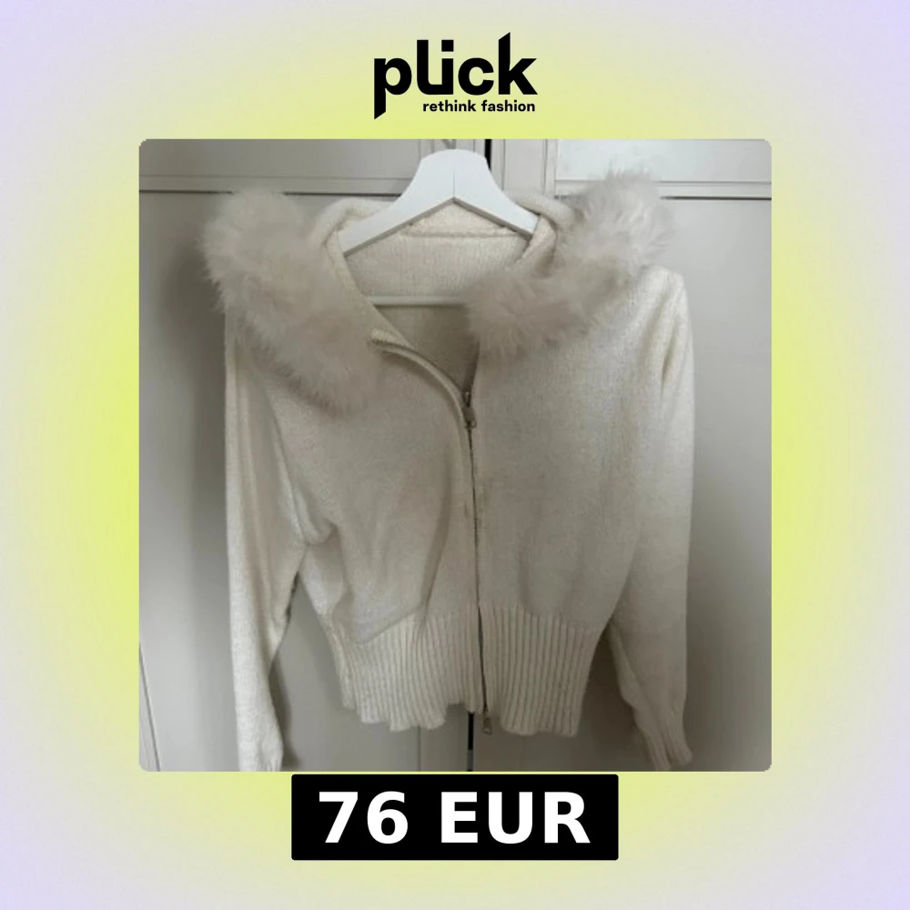 Säljer en vit hoodie med fluffig pälsdetalj på huvan och dragkedja framtill. Tröjan är stickad med ribbad nederkant och muddar vid ärmslut. Perfekt för dig som gillar mysiga och trendiga plagg med extra detaljer.