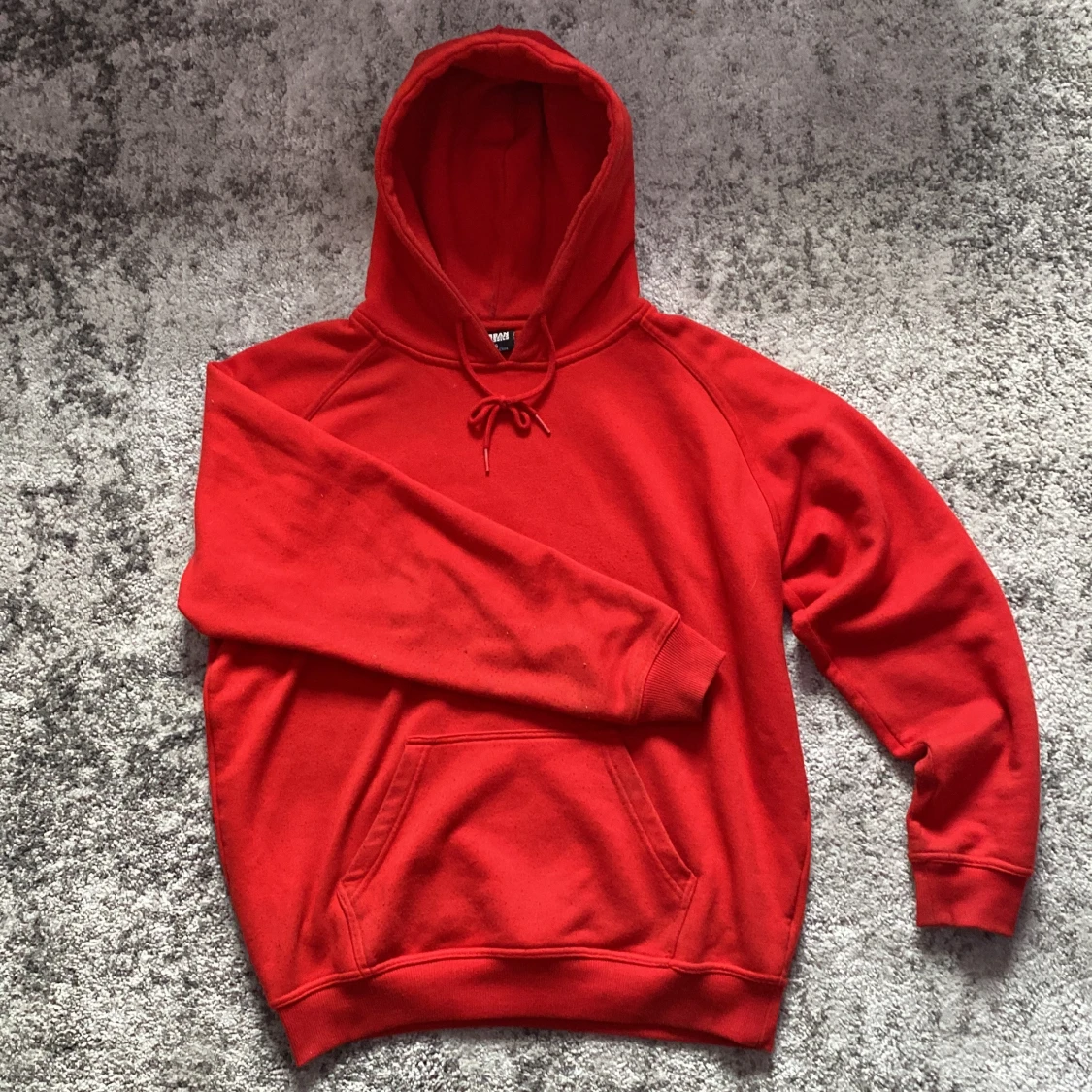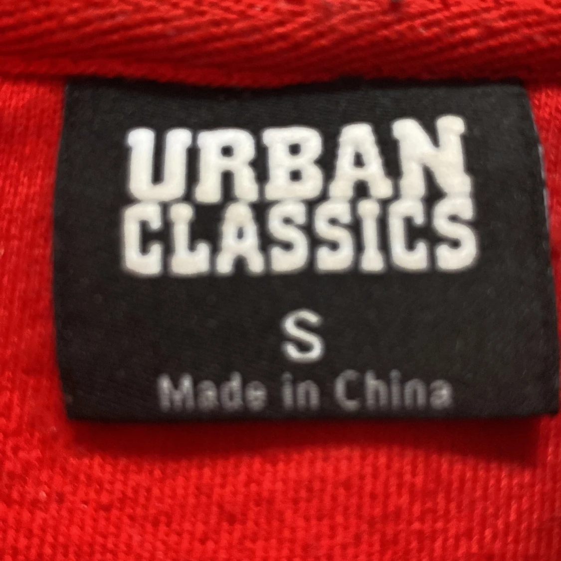 klassisk röd hoodie från Urban Classics i storlek S. Använd enstaka gång, har mest hängt i garderoben tyvärr. Hör av er vid funderingar!