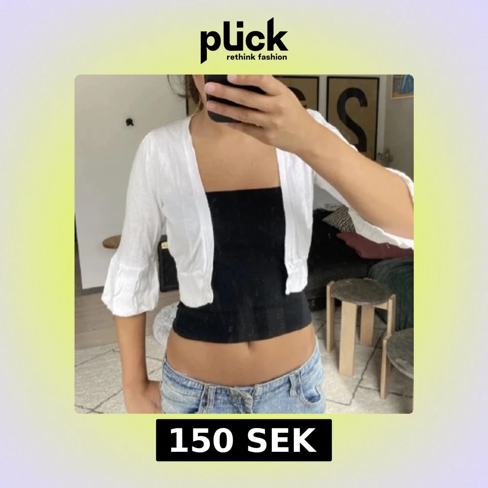 Jättesöt vit bolero med volangärmar, köpt här på Plick (lånade bilder från förra ägaren) men har ej kommit till användning av mig. Inga defekter vad jag kan se 💓