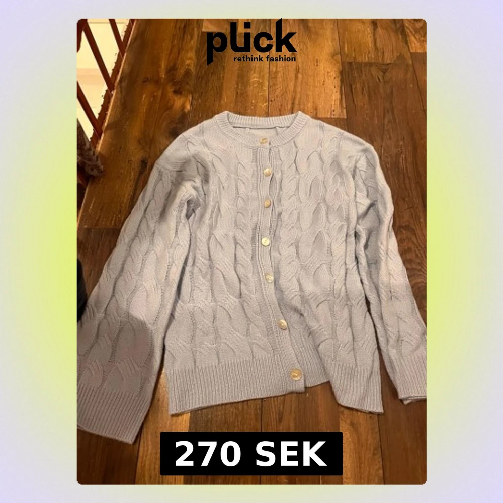 Ljusblå kabelstickad kofta