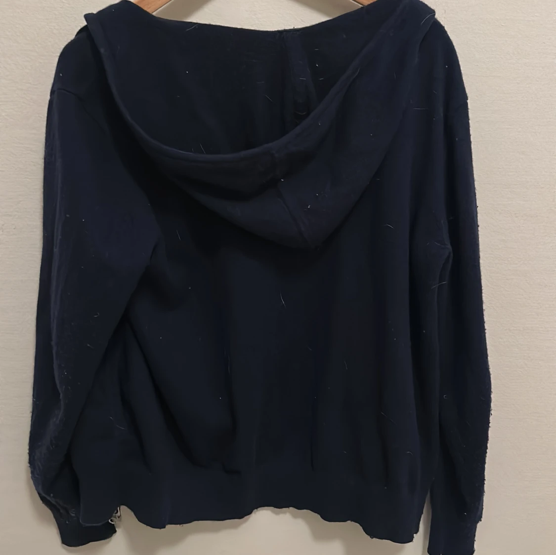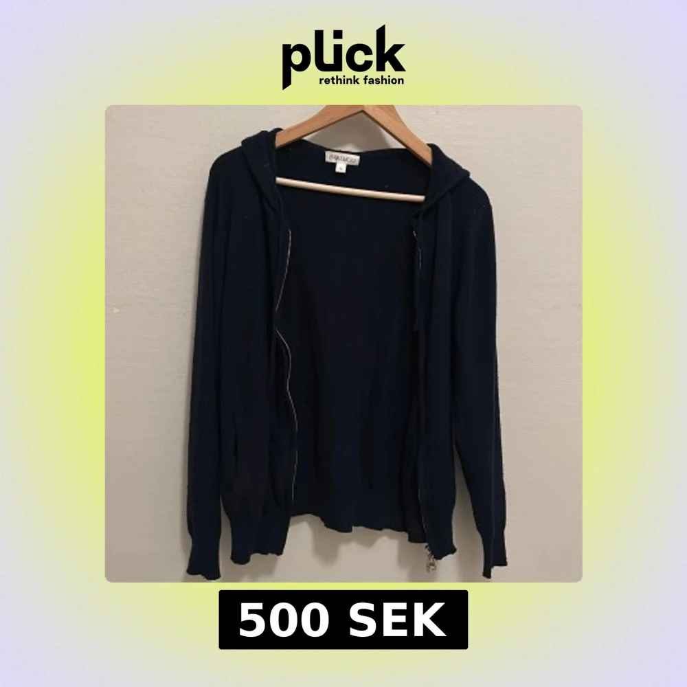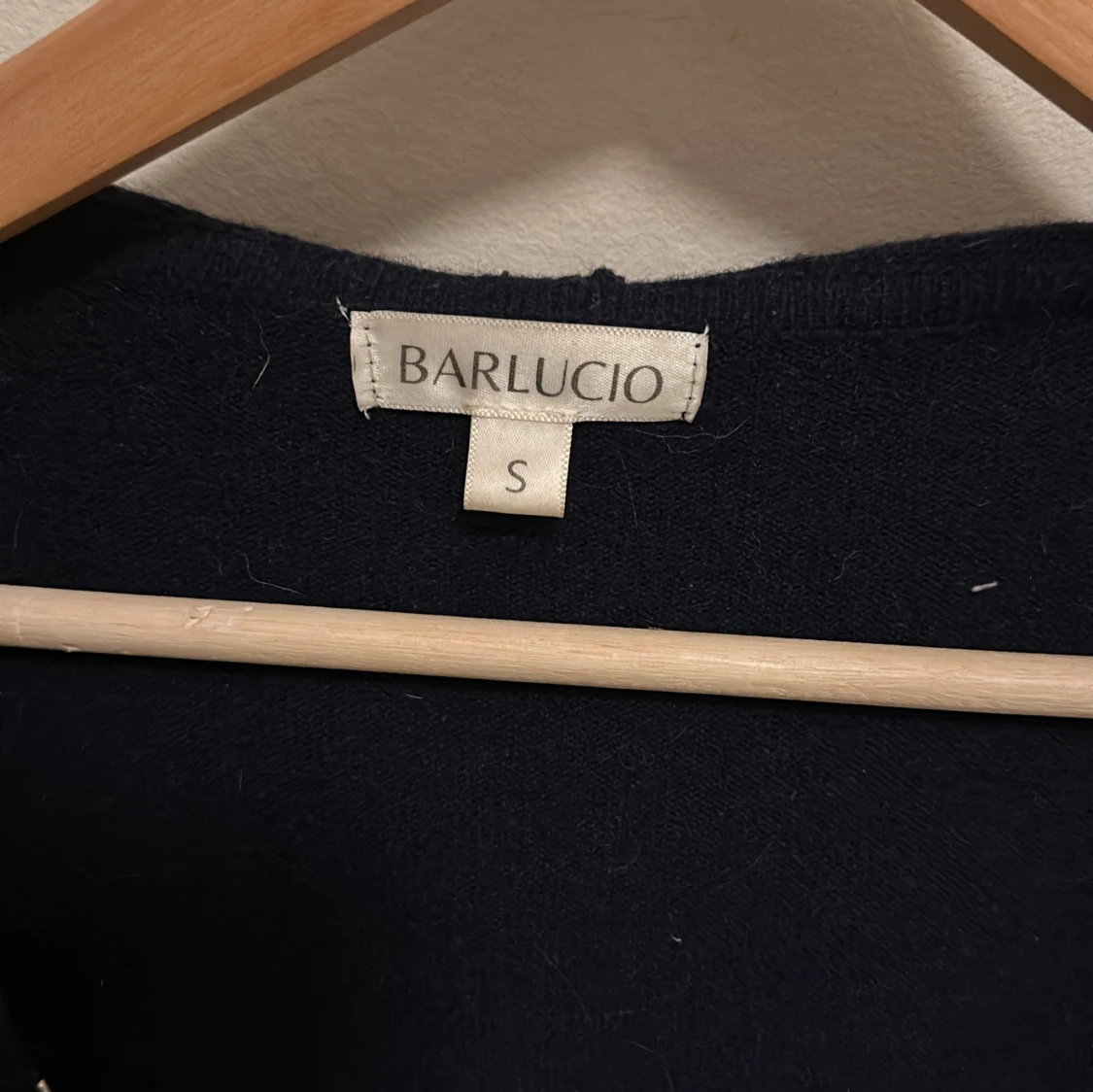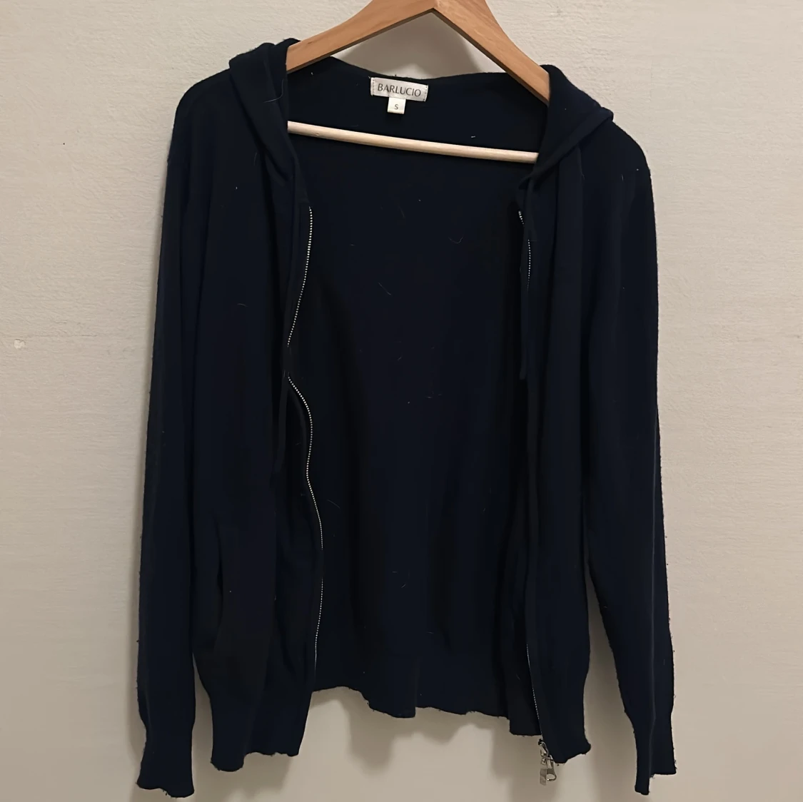 Mörkblå cashmere hoodie från Barlucio i storlek S. Tröjan har dragkedja framtill, huva och långa ärmar. Perfekt för dig som gillar en enkel och stilren look. Materialet känns mjukt och passar bra till kyligare dagar.