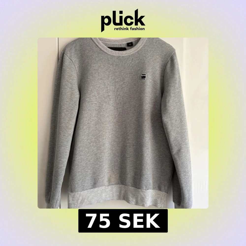 En stilren grå sweatshirt från G-Star RAW med liten logga på bröstet. Tröjan har rund halsringning, ribbade muddar och är tillverkad i mjuk bomullsmix. En svag missfärgning i nederkant på tröjan, ses site bilden. Annars jättefint skick.