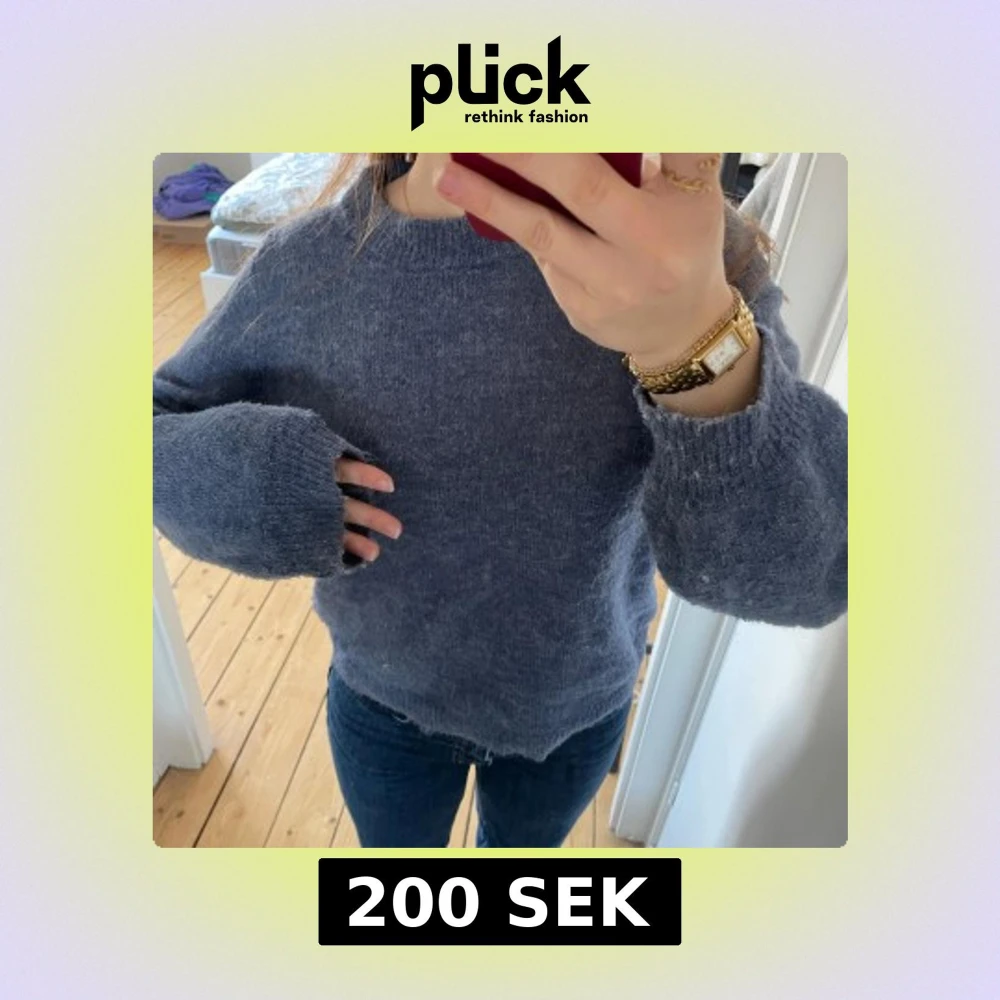 Säljer en mysig mörkblå stickad tröja med långa ärmar och ribbade muddar. Perfekt för kyliga dagar. Tröjan har en klassisk rund halsringning och en avslappnad passform.❣️❣️