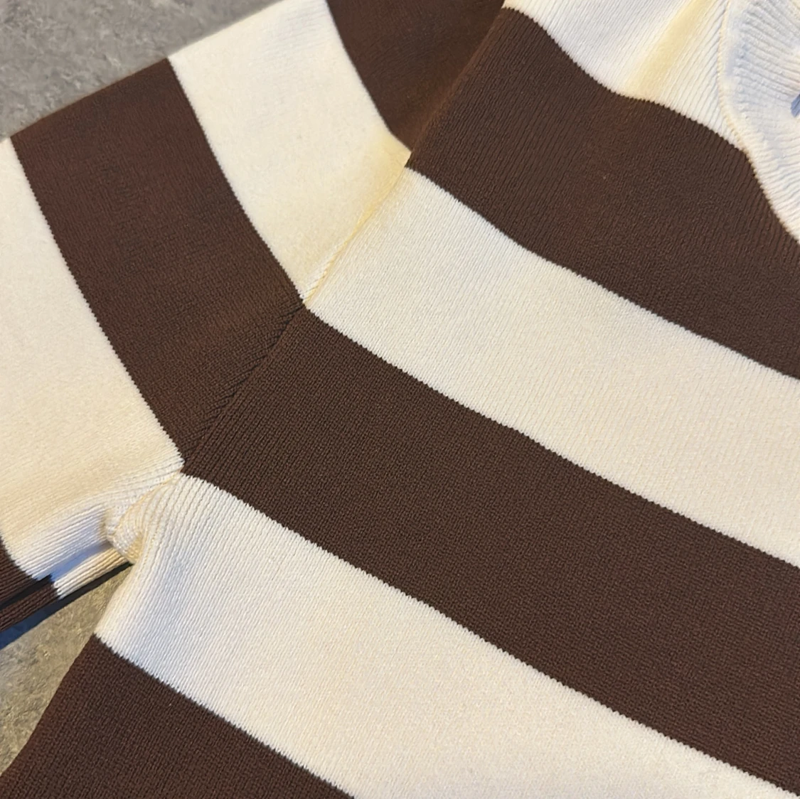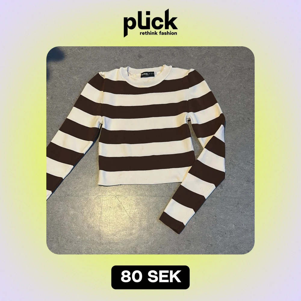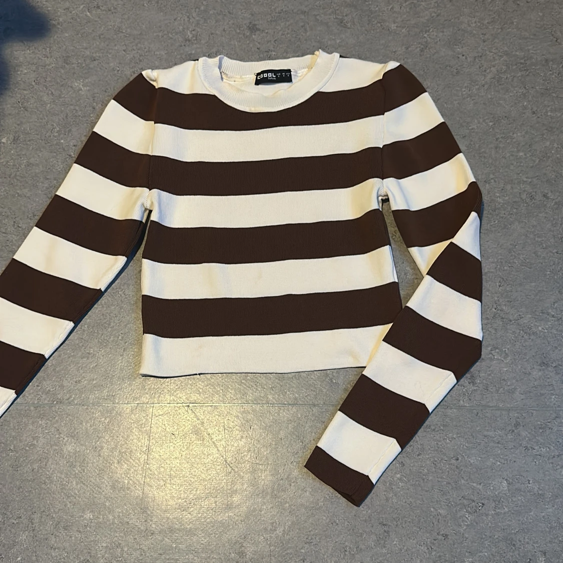 Randig, kroppad tröja. Brun/vit. Knappt använd. Storlek S