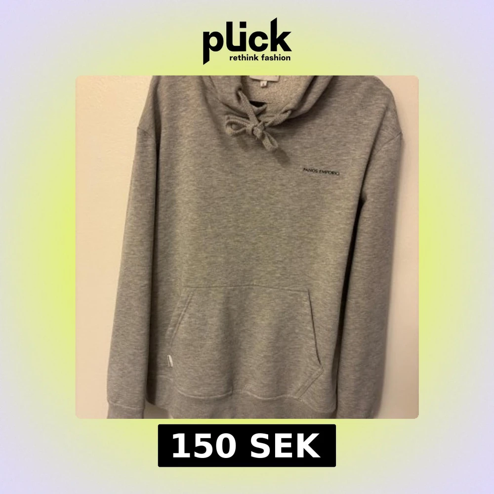 Snygg grå hoodie från Panos Emporio med diskret logga på bröstet. Tröjan har huva med snörning, känguruficka och långa ärmar. Perfekt för chill dagar eller när du vill ha en enkel och stilren look.