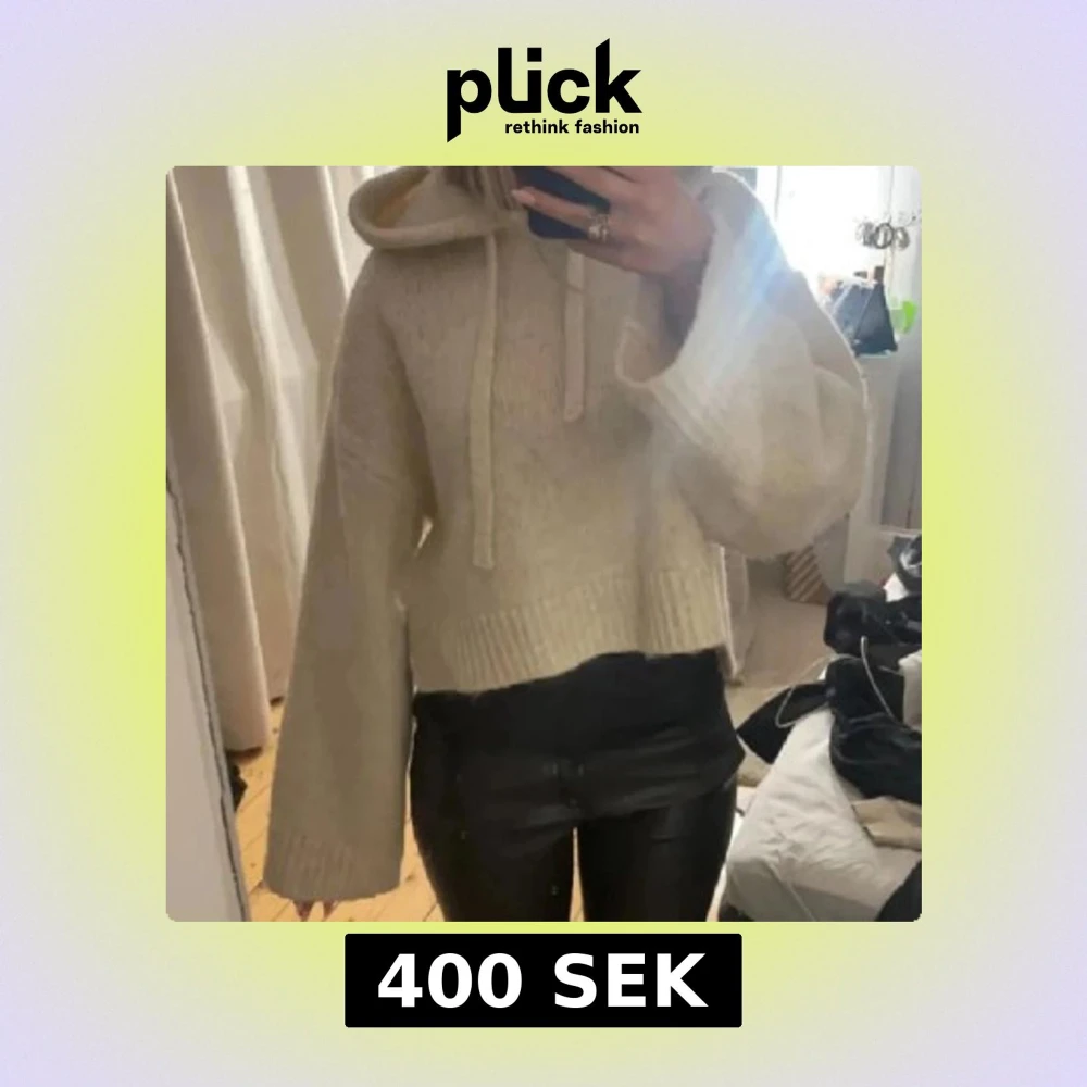 Säljer en mysig beige stickad hoodie med långa ärmar och en croppad passform. Perfekt för kyliga dagar med sin mjuka och varma känsla. Den har en klassisk huva med dragsko och ribbade kanter. Bilden är lånad💗💗storleken är blandning av xs/s