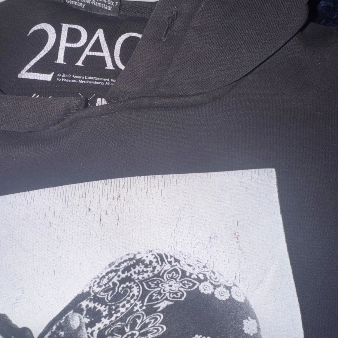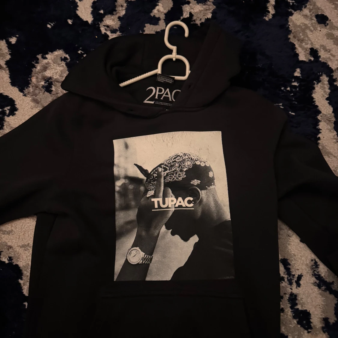 Svart hoodie med Tupac-tryck (pris kan diskuteras)