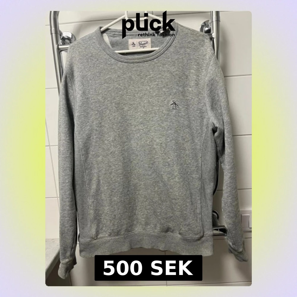 Klassisk grå sweatshirt från Original Penguin med rund halsringning och diskret broderad pingvinlogga på bröstet. Tröjan har långa ärmar, ribbade muddar och är tillverkad i mjukt bomullsmaterial. Enkel och stilren design som funkar till det mesta.