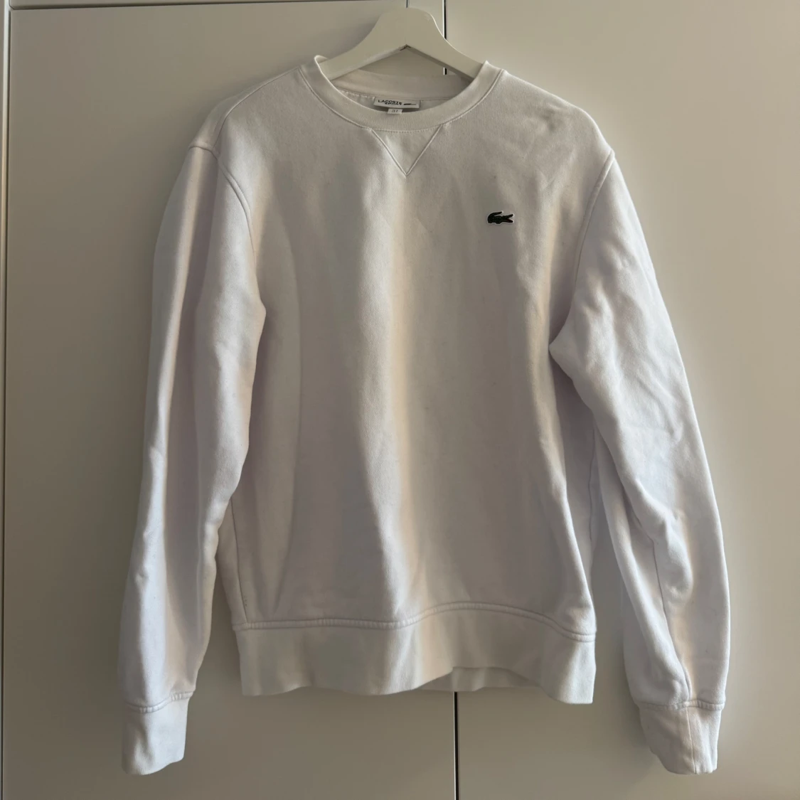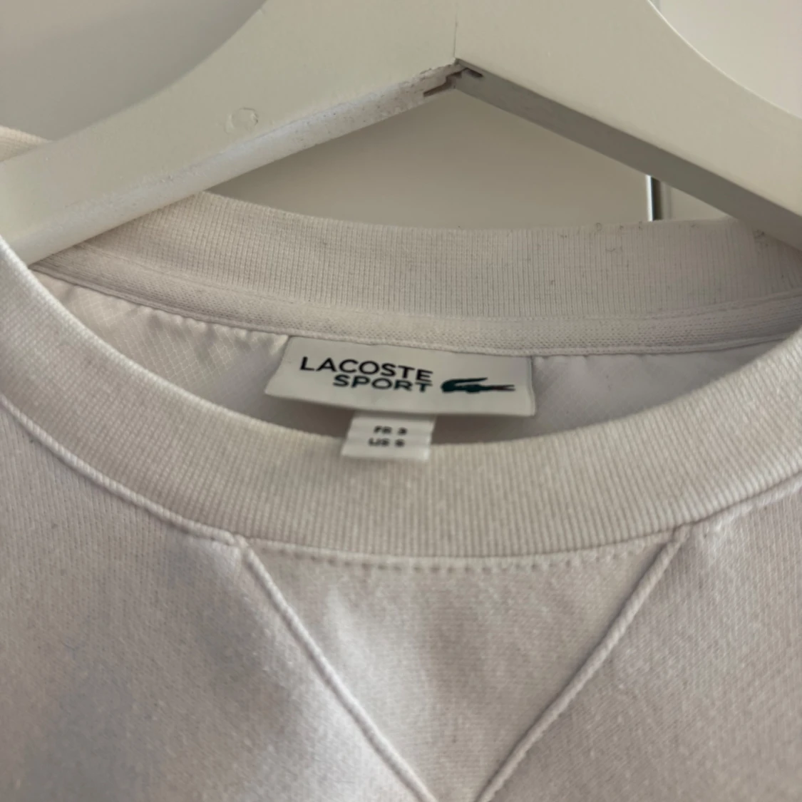 Säljer här en vit sweatshirt från Lacoste Sport, i storlek S. Mitt pris 200kr