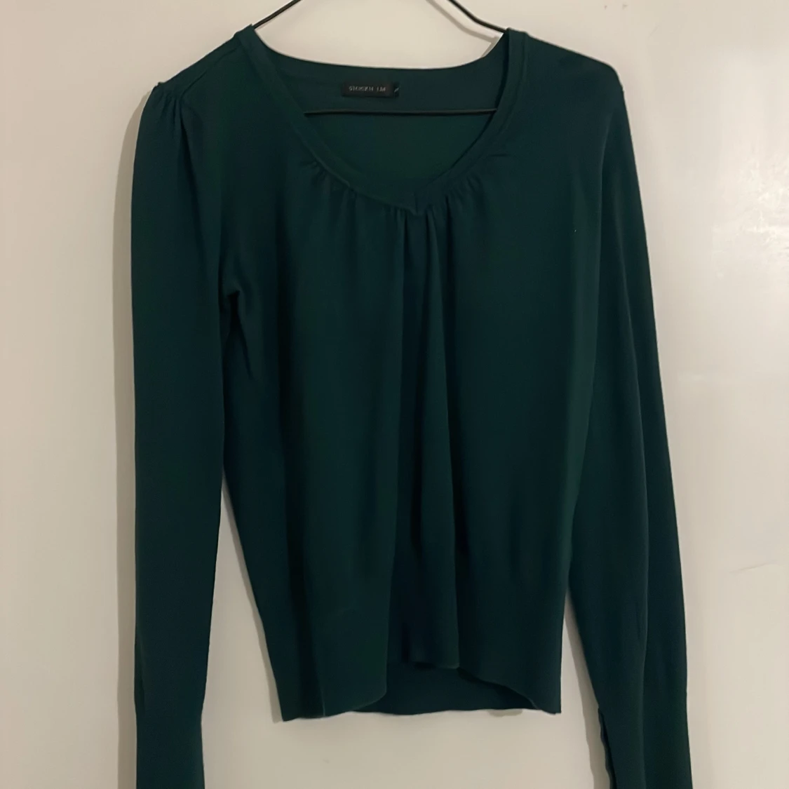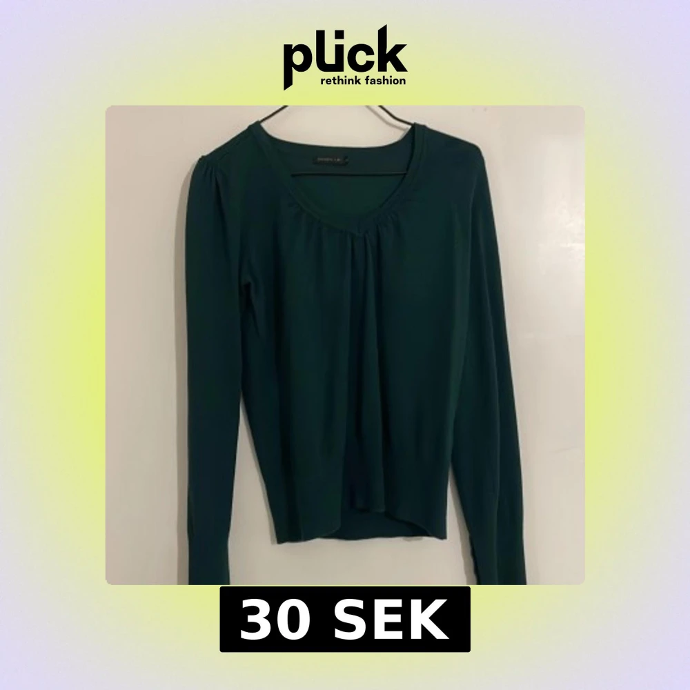 Snygg grön långärmad topp med v-ringad design. Perfekt för en stilren look. Passar bra till både jeans och kjol. Enkelt att matcha med andra plagg i garderoben.