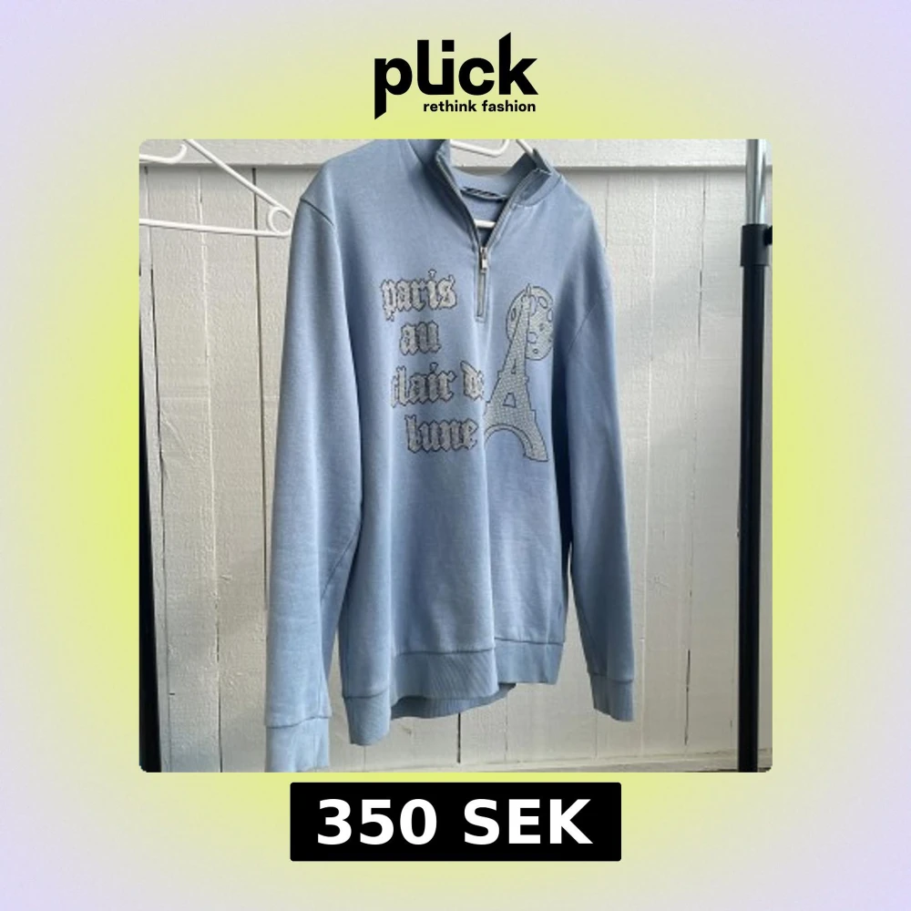 Ljusblå hoodie med dragkedja och Paris-tryck
