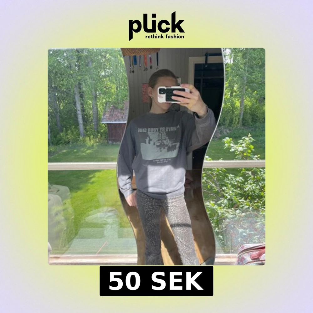 Grå sweatshirt från H&M Divided med stort vitt tryck framtill med texten 'ALWAYS BY YOUR SIDE' och motiv av en skidlift. Tröjan har rund hals, ribbade muddar och en avslappnad passform. Perfekt för chill dagar eller när du vill ha en cool streetstyle.