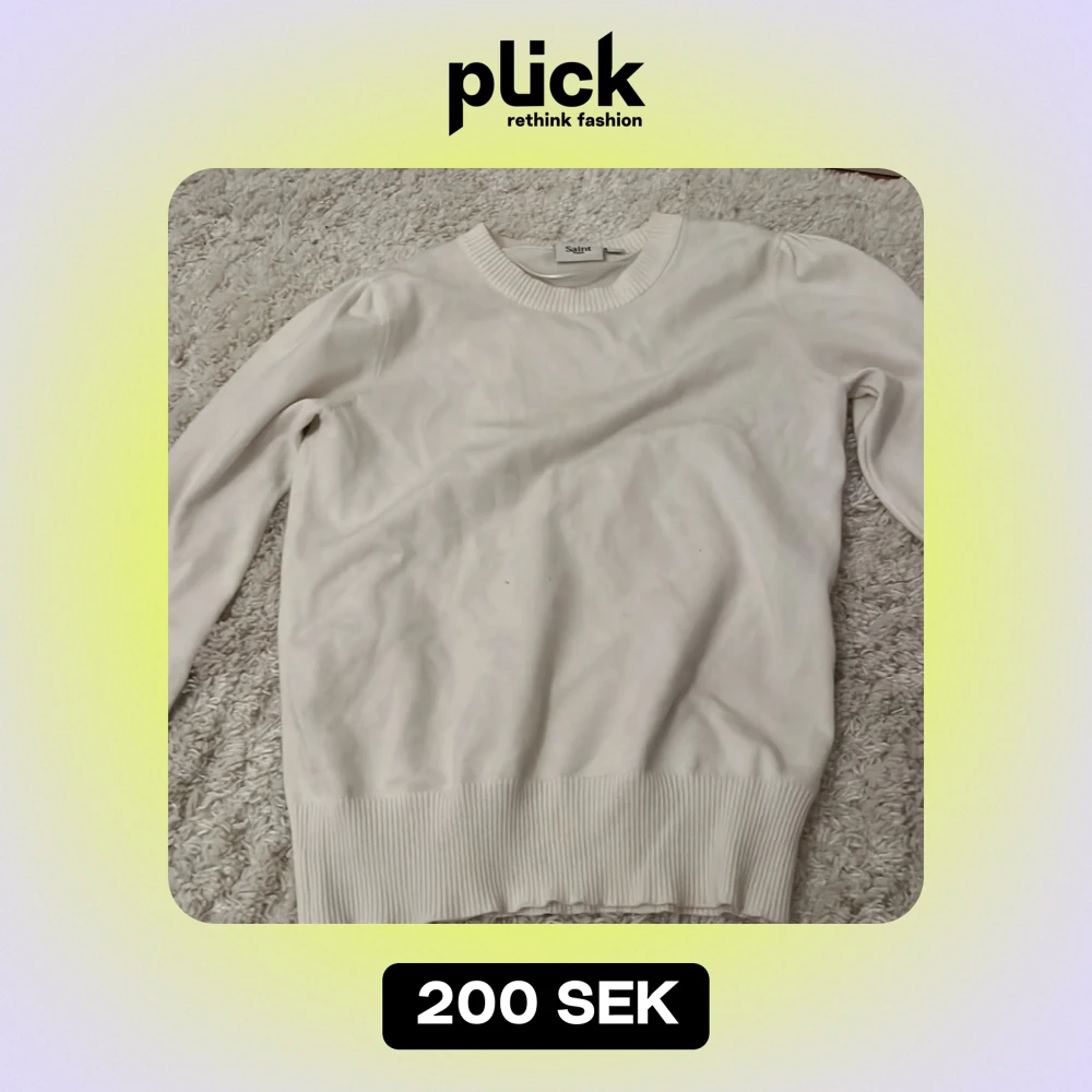 Säljer en stilren vit tröja från Saint Tropez i storlek S. Tröjan har långa ärmar och en rund halsringning med ribbade kanter. Perfekt för en enkel och klassisk look.