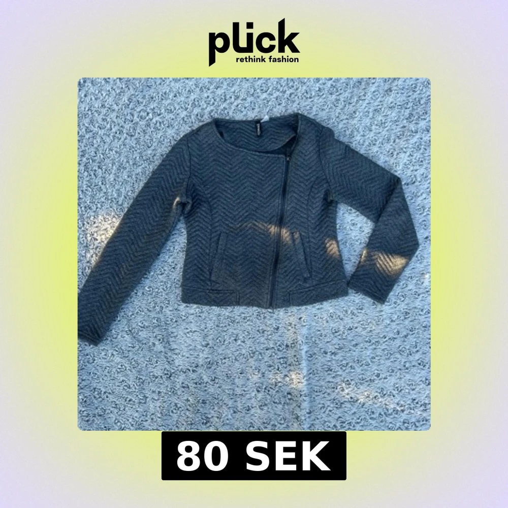Snygg grå jacka från Divided med quiltat sicksackmönster och asymmetrisk dragkedja. Jackan är figursydd, har rund halsringning och långa ärmar. Perfekt för dig som gillar en stilren look med lite edge.