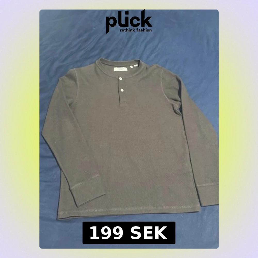 Säljer en mörkgrå långärmad henleytröja från Polarn O. Pyret. Tröjan har rund halsringning och två knappar framtill. Tillverkad i mjukt, ribbat material som är skönt mot huden. Perfekt för lager-på-lager och enkel att matcha med olika outfits.