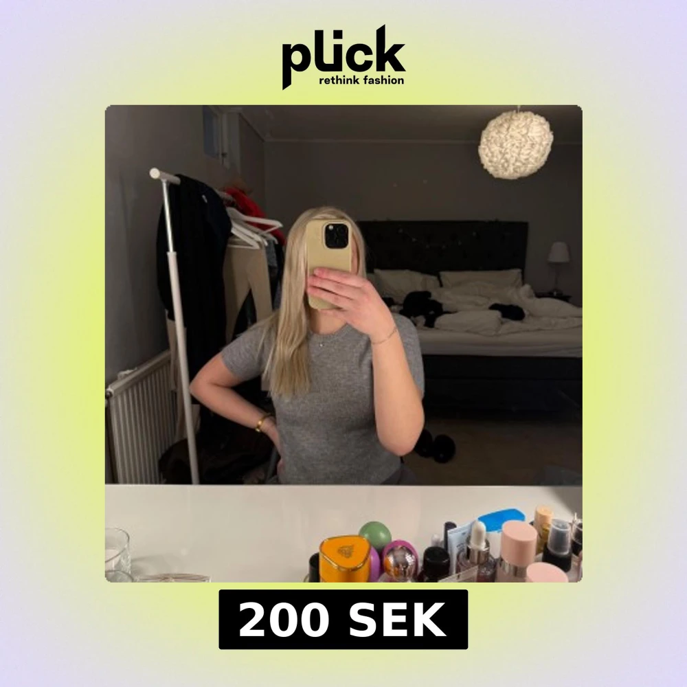 Säljer en stilren grå tröja med korta ärmar. Perfekt för en enkel och avslappnad look. Tröjan är i ett mjukt material som känns skönt mot huden.