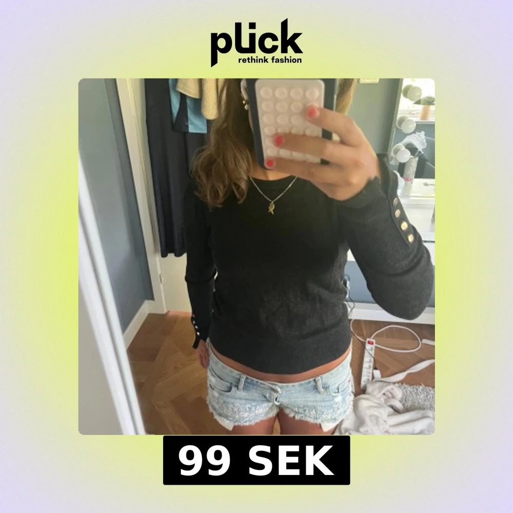 Snygg tröja med lång ärm och coola guldiga knappar på ärmsluten. Tröjan har en normal passform och är perfekt för dig som gillar stilrena och enkla plagg med en liten twist. Passar till jeans, kjol eller shorts.