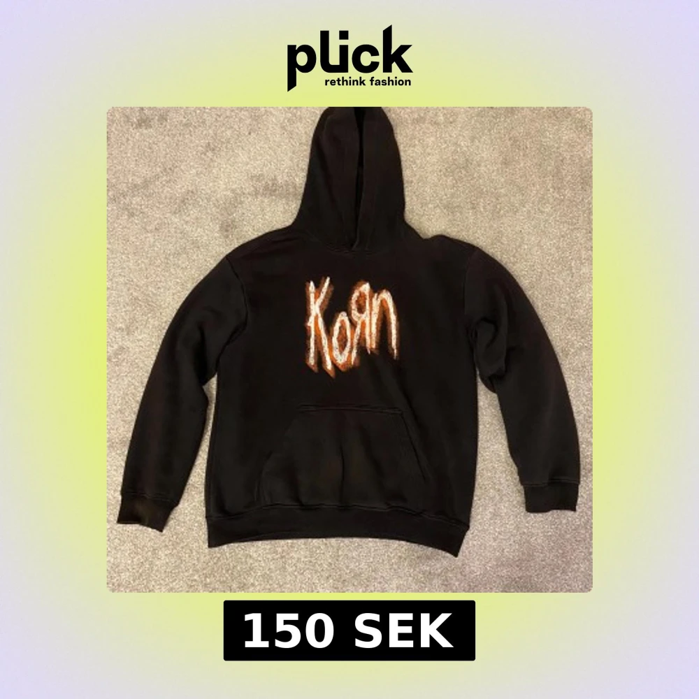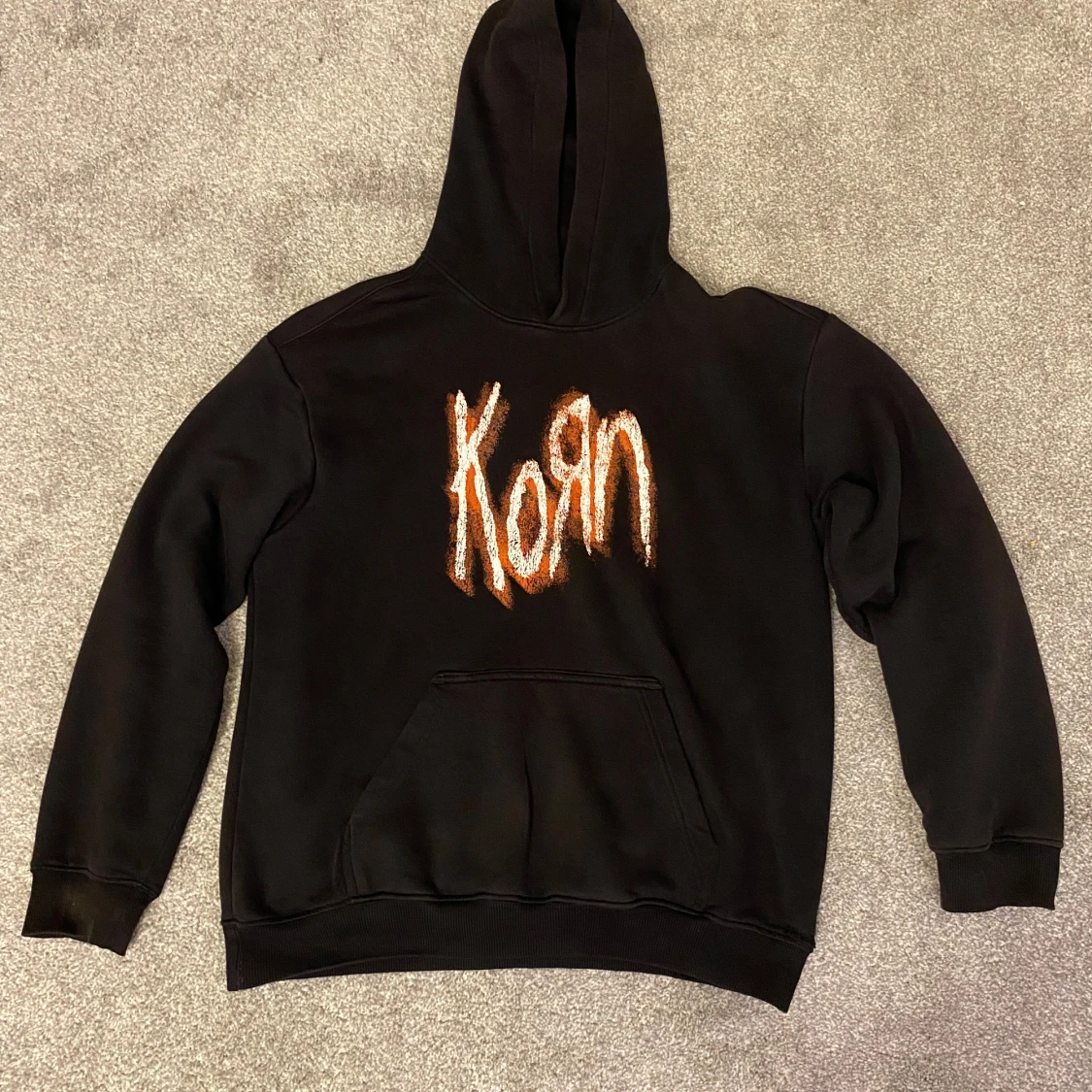 Svart hoodie med Korn. Perfekt för dig som gillar bandmerch och vill ha en skön, avslappnad stil.