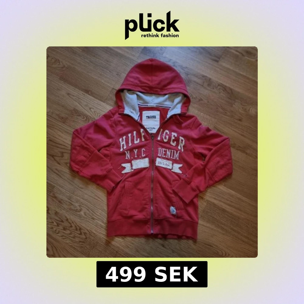 Vintage Tommy Hilfiger hoodie – röd Klassisk Hilfiger Denim zip-hoodie i rött med vita broderade detaljer och tryck framtill. Modellen har hel dragkedja, två fickor framtill, huva med kontrastfoder och klassisk Hilfiger-flagga på ärmen. 🧥Storlek: Small ✨ Skick: Bra vintagekondition – färgen är fortfarande fin och muddarna i bra skick. Det finns en liten fläck på framsidan (se bild 2), annars i mycket fint skick. Hör av er vid ytterligare funderingar. Pris är inte hugget i sten😁