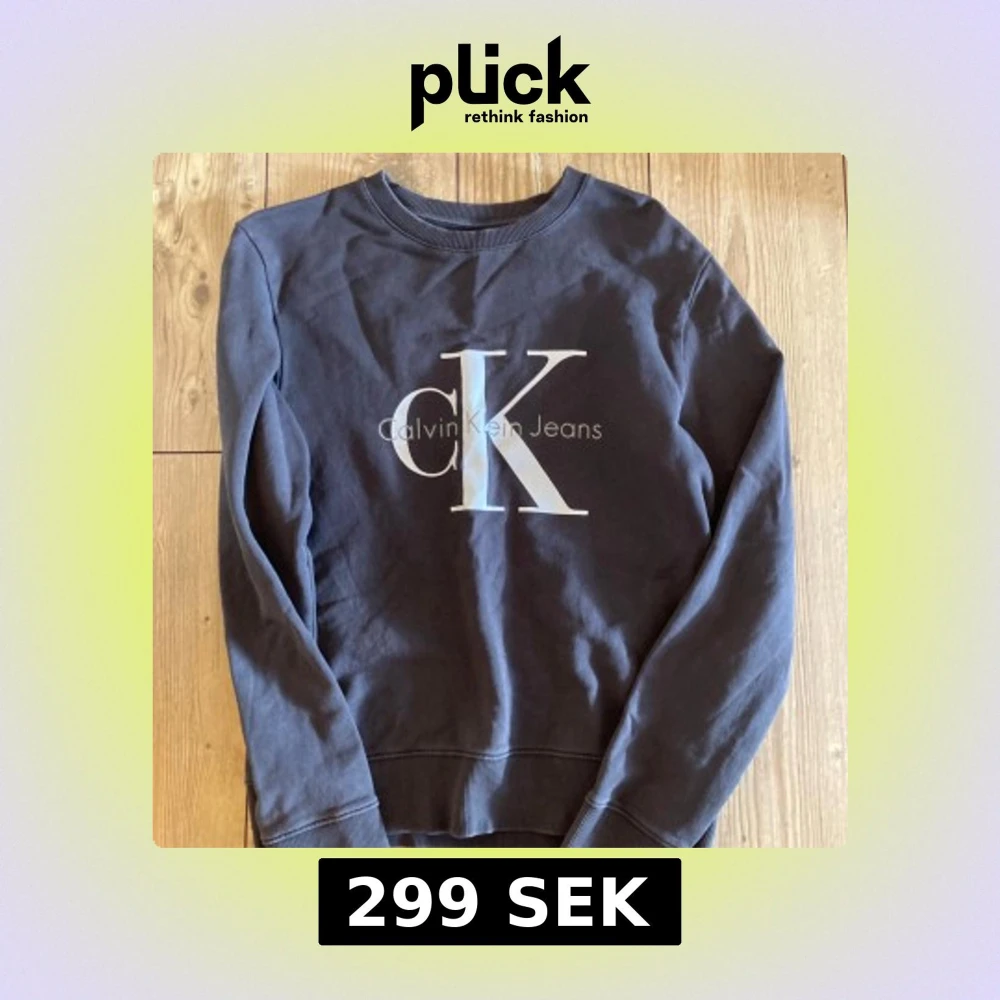 Säljer en snygg mörkblå tröja från Calvin Klein Jeans med deras ikoniska logga på framsidan. Tröjan har långa ärmar och en rund halsringning. Perfekt för en stilren och avslappnad look. Vid frågor är det bara att skicka🌟