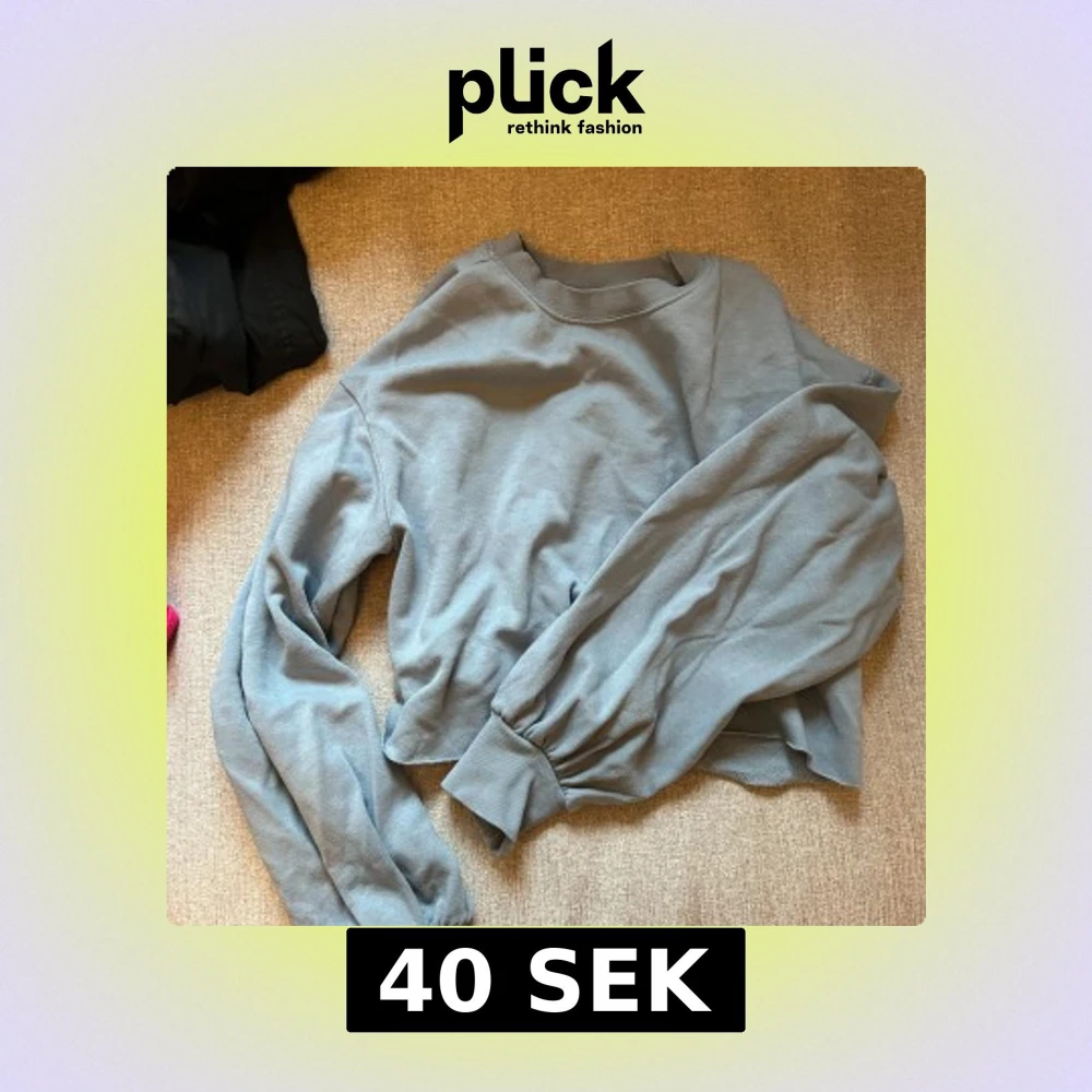 Säljer en stilren grå croppad sweatshirt med långa ärmar och ribbade muddar. Perfekt för en avslappnad look. Passar bra till jeans eller leggings.