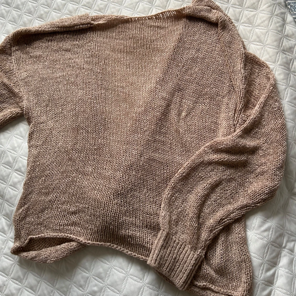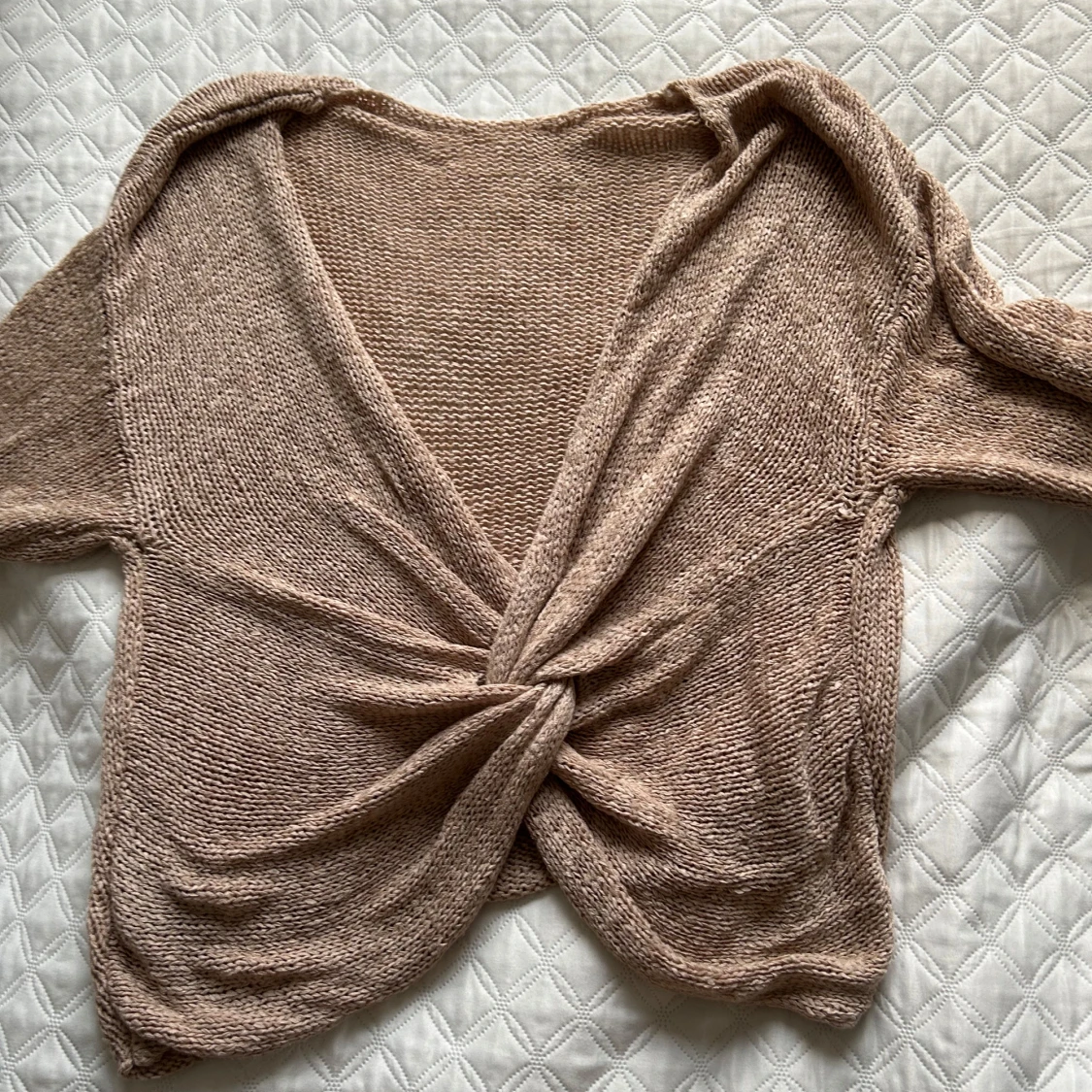 Säljer en mysig beige stickad omlottopp med långärmad design. Perfekt för en avslappnad stil med en twist baktill. Passar bra till både jeans och kjol. Säljer även en svart likadan som ni kan hitta bland mina andra annonser 🦋
