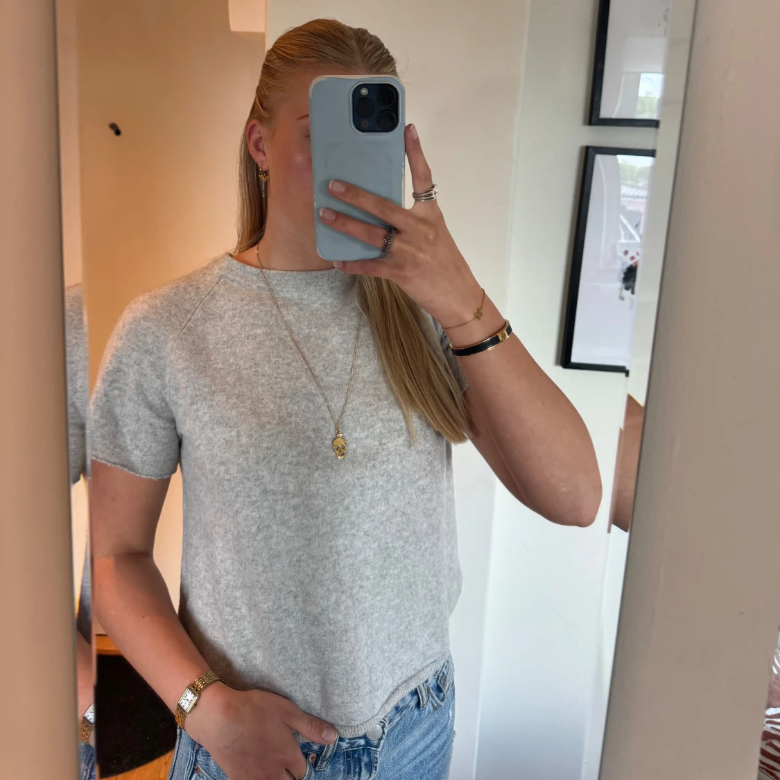 Supermjuk och lyxig grå t-shirt-tröja i 100% kashmir från Soft Goat.