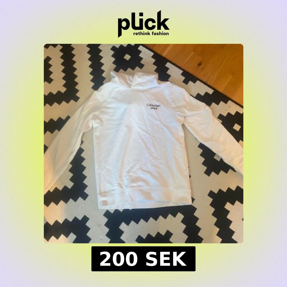 Säljer en stilren vit hoodie från Calvin Klein Jeans. Den har en klassisk design med långärmade ärmar och en bekväm passform. Perfekt för en avslappnad look.