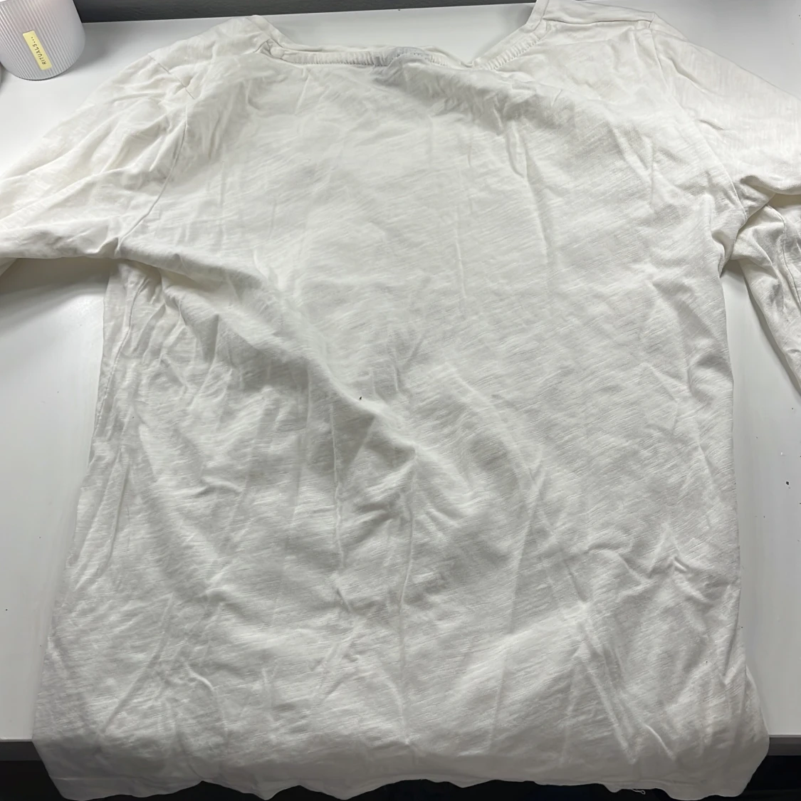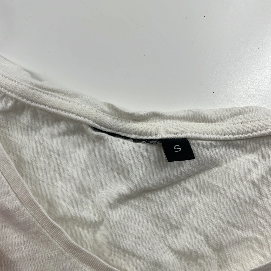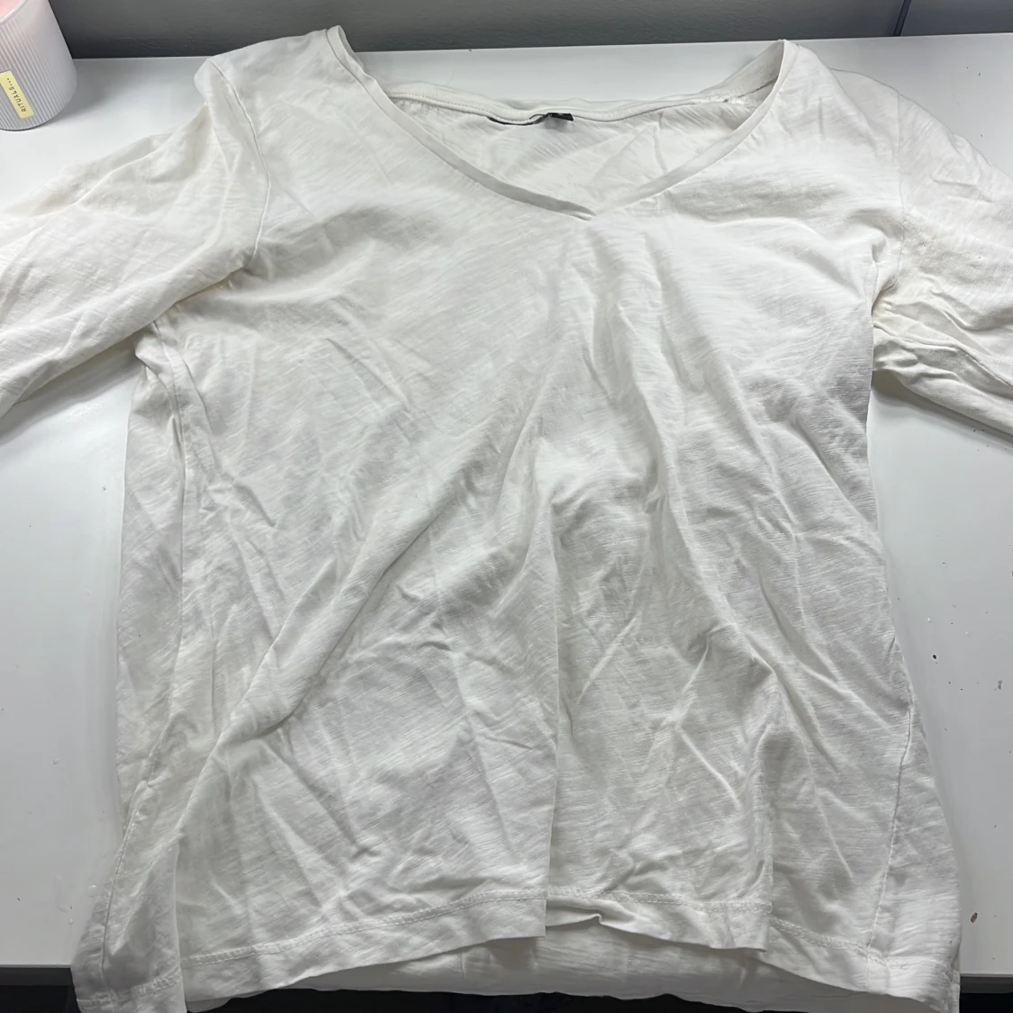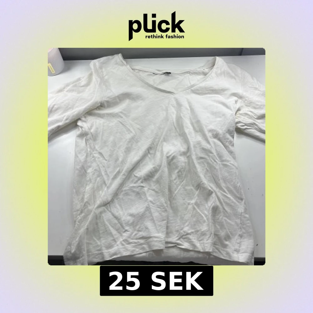 Säljer en enkel och stilren vit långärmad tröja med v-ringning. Perfekt för en avslappnad look. Tröjan är i storlek S och har en mjuk och bekväm passform. Vet tyvärr inte var den är ifrån