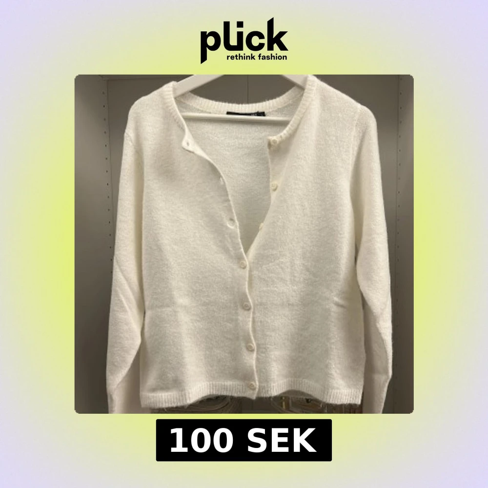 Mysig vit kofta med rund halsringning och knäppning framtill. Tröjan är stickad i ett mjukt material och har långa ärmar samt ribbade muddar vid ärmslut och nederkant. Perfekt för lager-på-lager och chill dagar.