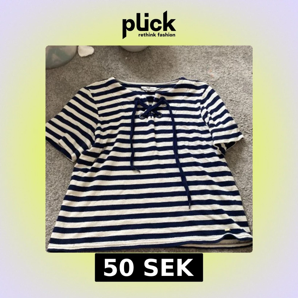 Randig tröja från Hampton Republic i marinblått och vitt. Oklart hur många användningar men den är i bra skick.