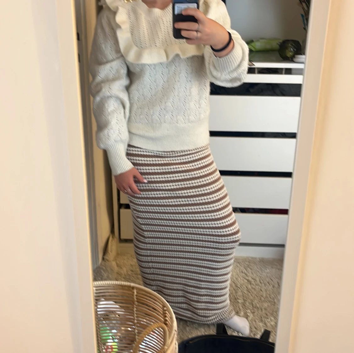 Vit stickad tröja med volang Holly & White