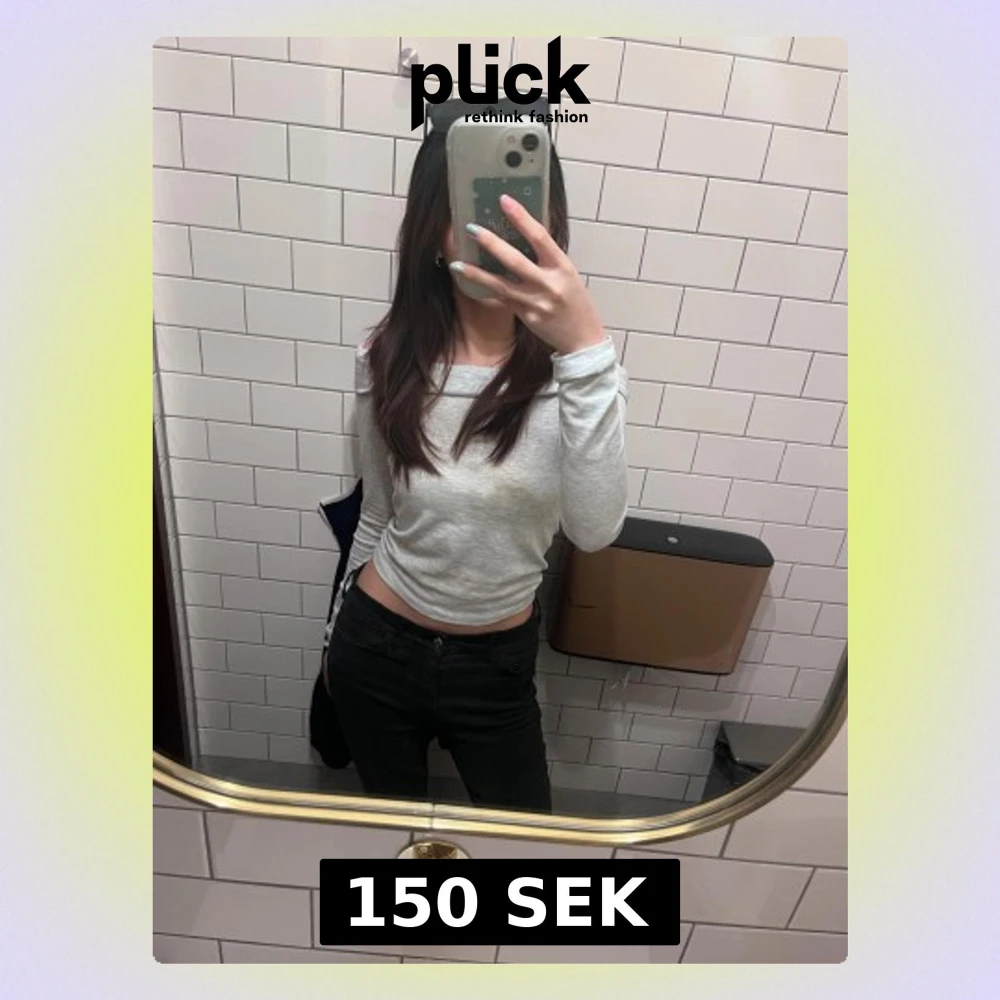Säljer en ljusgrå offshoulder topp med långa ärmar. Toppen är croppad och har en bred kant upptill som ger en snygg och modern look. Perfekt att styla med höga jeans eller kjol. Materialet är mjukt och stretchigt, vilket gör den bekväm att bära hela dagen.