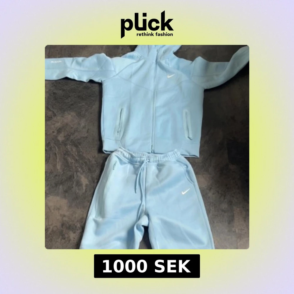 Säljer en ljusblå hoodie från Nike NOCTA med hel dragkedja och huva. Tröjan har långa ärmar, ribbade muddar och diskreta vita loggor på bröstet och ärmarna. Perfekt för dig som gillar streetwear och sportig stil.