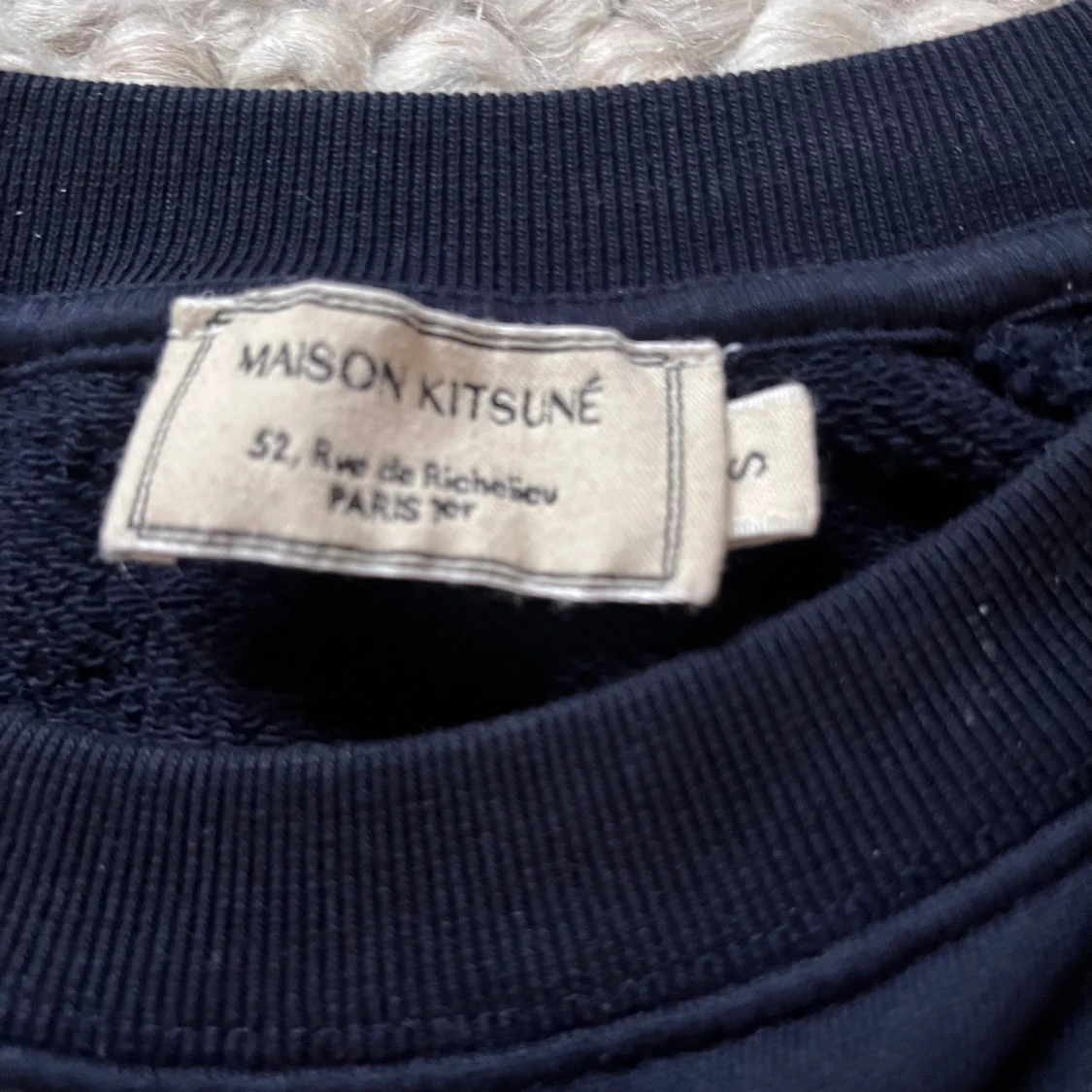 Snygg marinblå sweatshirt från Maison Kitsuné med vit logotyp på bröstet i storlek S🤩