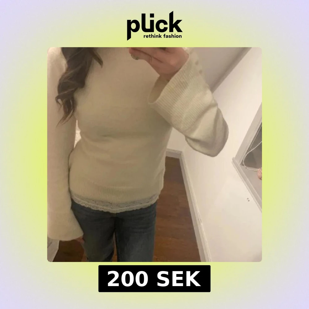 Säljer en stilren vit stickad tröja med långa ärmar och ribbade detaljer vid ärmslut och nederkant. Perfekt för kyligare dagar och lätt att matcha med olika outfits.