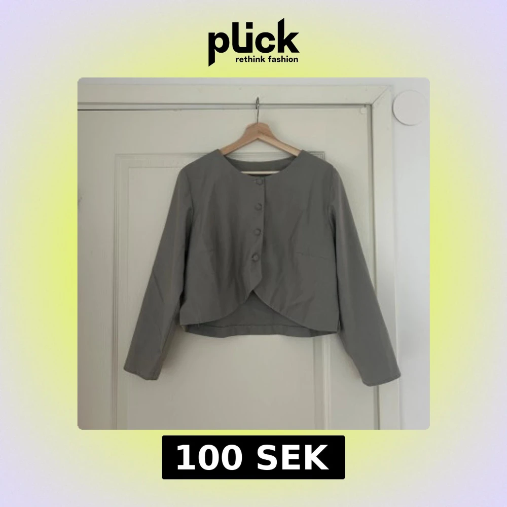 Grågrön kort jacka/kofta med knappar. Hemmagjord