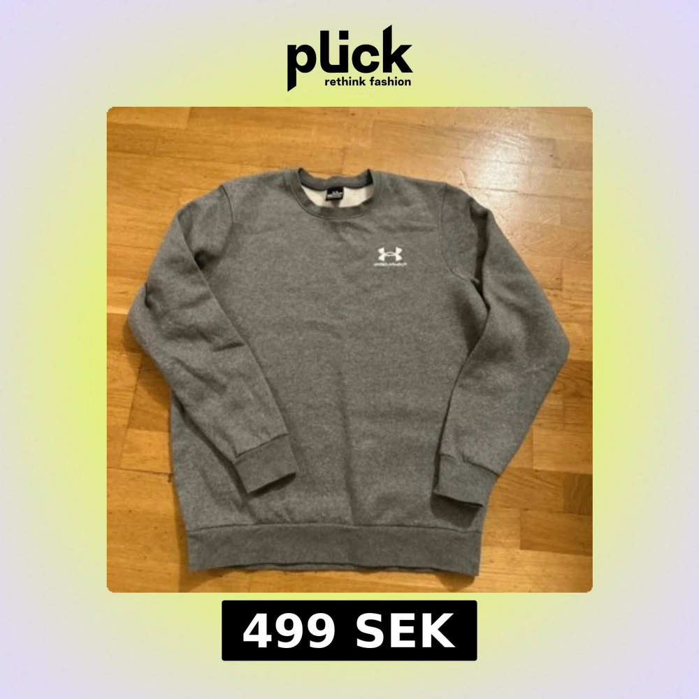 Säljer en stilren grå sweatshirt från Under Armour med deras logga tryckt på bröstet. Tröjan har en klassisk rund hals och långa ärmar, perfekt för en avslappnad look. Passar bra till både träning och vardag.